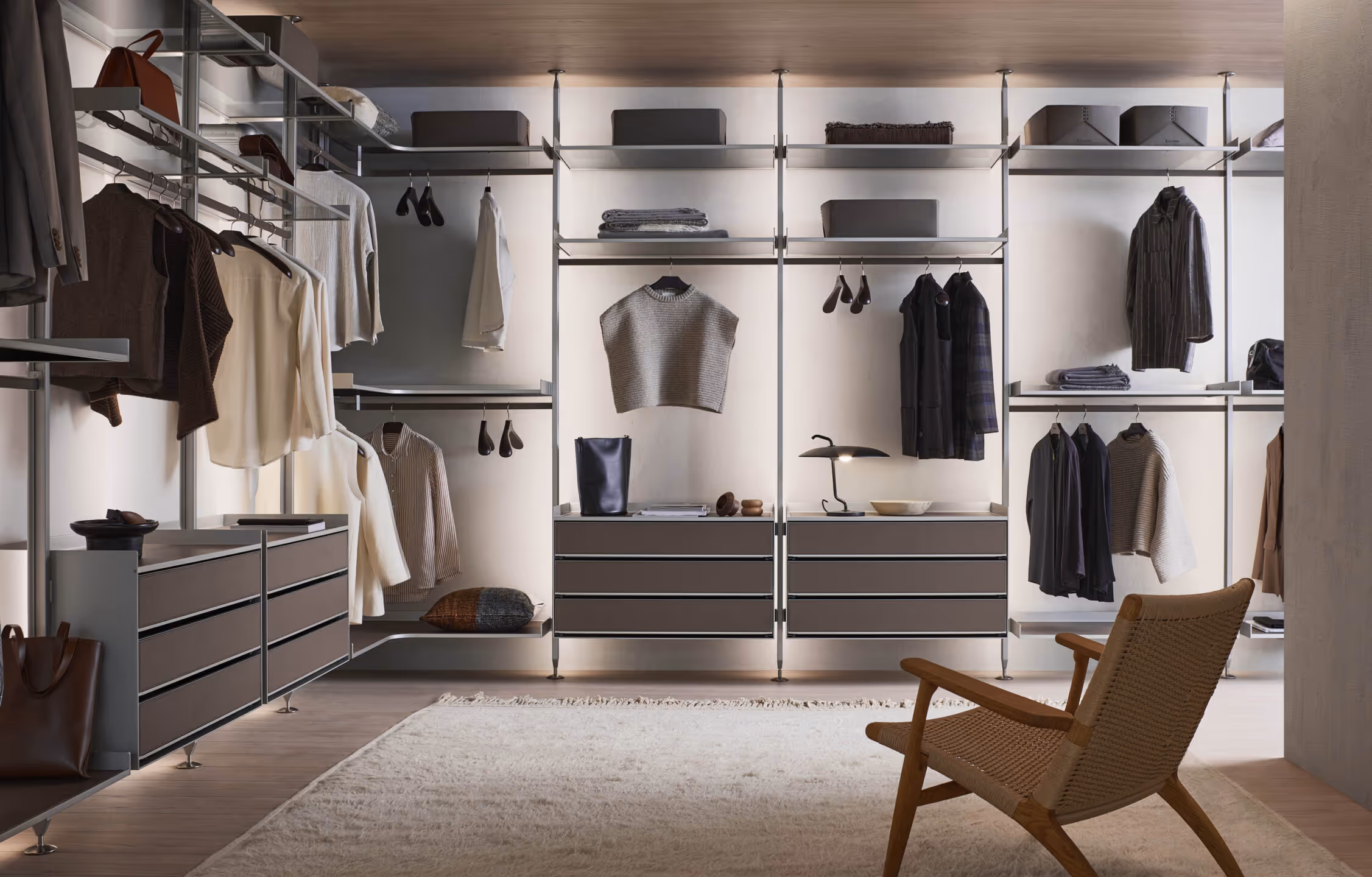 Rimadesio redefines the very concept of space with their Italian-crafted systems for doors, walls, wardrobes, and more. Come explore our curated selection of Italian-made luxury designs that combine clever storage solutions with efficient space division.